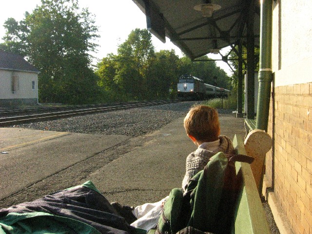 Amzie watches the train to NYC arrive at the High Bridge station.